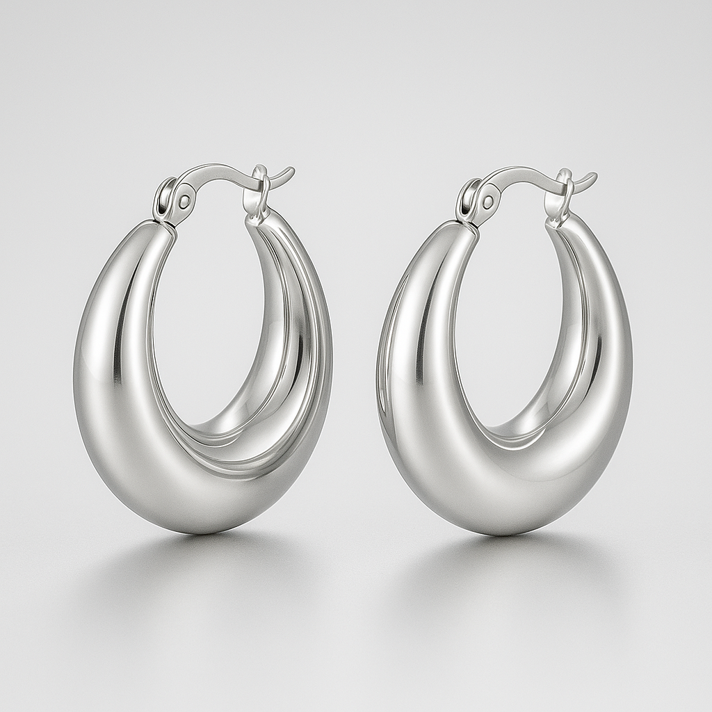 Onze zilveren oorbellen stralen eenvoud en luxe uit. Een verfijnd design dat moeiteloos past bij elke look, van casual tot chic. De glanzende afwerking geeft jouw outfit net dat beetje extra.