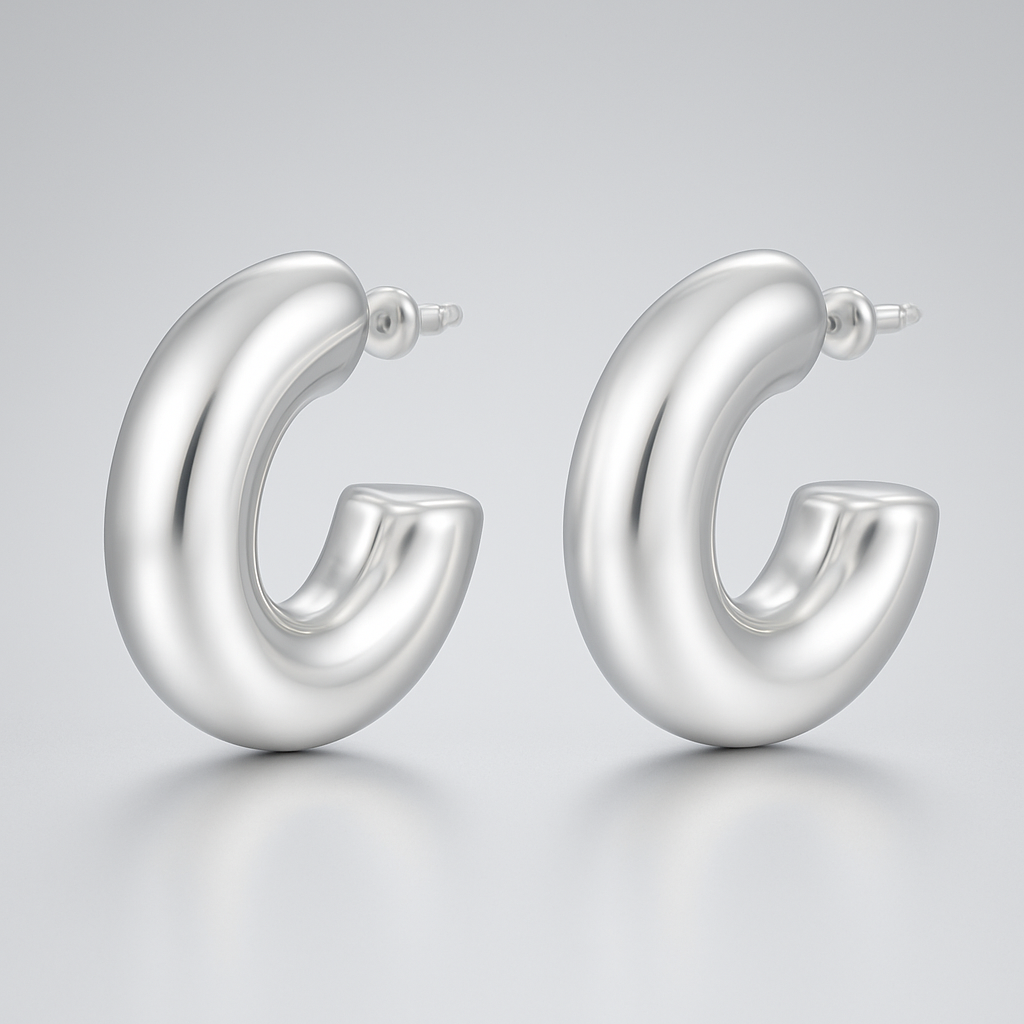Onze zilveren oorbellen stralen eenvoud en luxe uit. Een verfijnd design dat moeiteloos past bij elke look, van casual tot chic. De glanzende afwerking geeft jouw outfit net dat beetje extra.