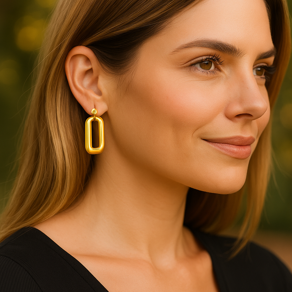 Deze elegante oorbellen zijn gemaakt van hoogwaardig roestvrij staal met een stralende 18K gold plated finish. Het gladde, moderne ontwerp geeft elke look een luxe touch maar ook subtiel, stijlvol en altijd passend bij jouw outfit.