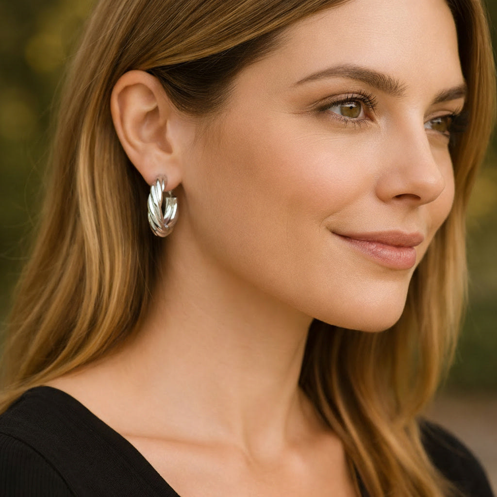 Onze zilveren oorbellen stralen eenvoud en luxe uit. Een verfijnd design dat moeiteloos past bij elke look, van casual tot chic. De glanzende afwerking geeft jouw outfit net dat beetje extra.